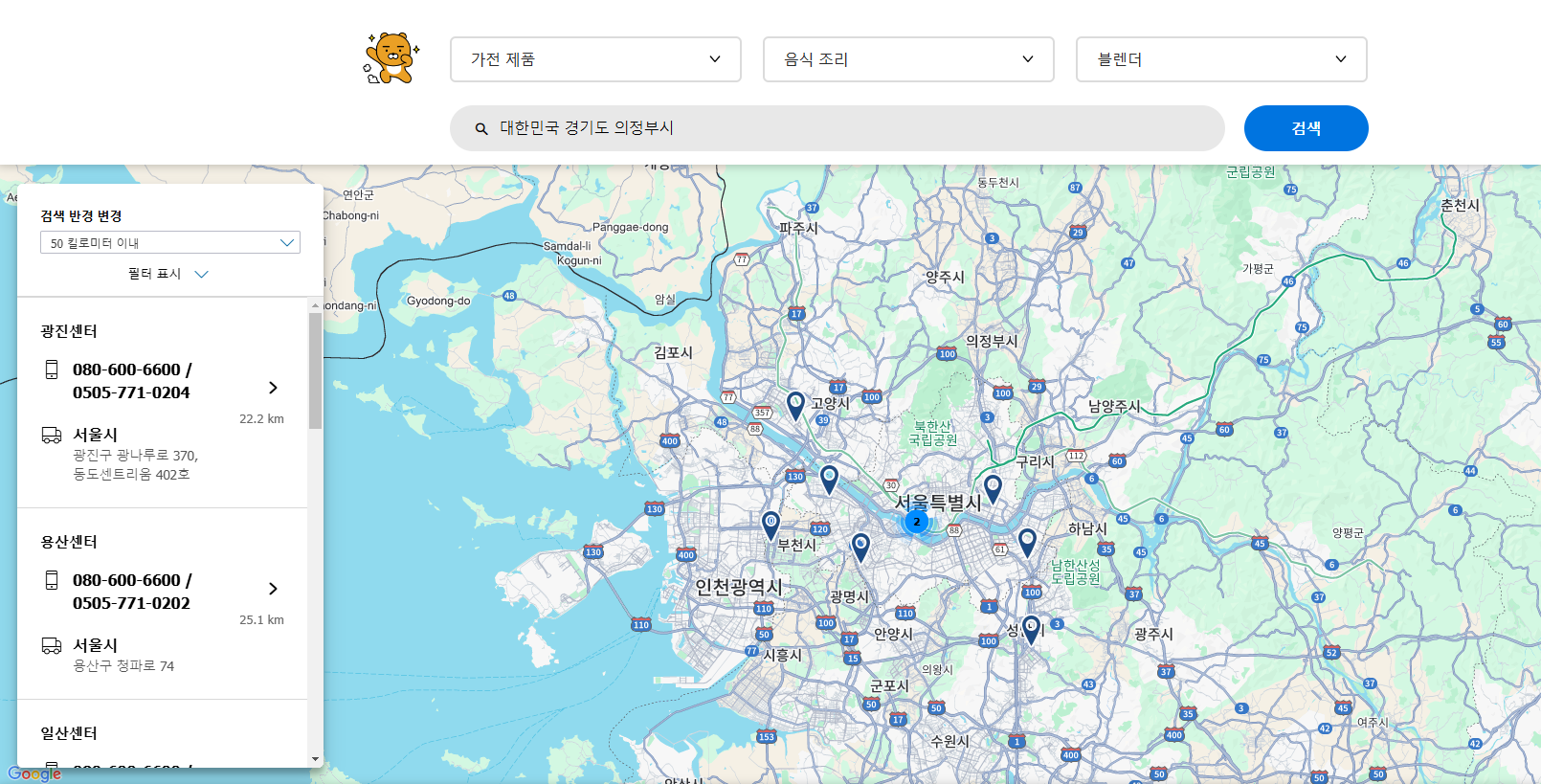 더 자세한 서비스센터 위치나 정보를 원하신다면,